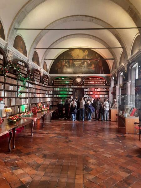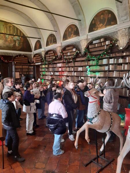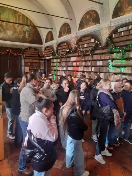 Dans la prestigieuse salle des Jésuites, les élèves de 6ème ont pu admirer pour la première fois les trésors de l'enluminure romaine : le codex, des manuscrits de toute beauté décorés de miniatures représentant une scéne ou un personnage.
